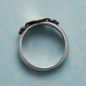 Our ethereal ring sets white topaz in 14kt gold plated bezels around a deeply textured sterling silver band. Exclusive. Whole sizes 5?C10.