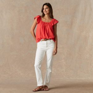 Scalloped crochet detailing on the sleeves and hem gives a feminine finish to this soft slub knit top. Elastic neck allows it to be worn on or off the shoulder. Cotton. Machine wash. Imported. Sizes XS (0-2). S (4-6). M (8-10). L (12-14). XL (16-18). XXL (20-22). Approx. 24l.